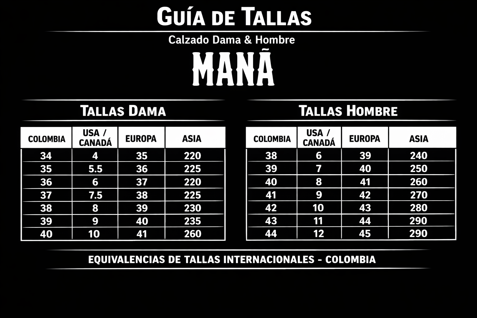 Guía de tallas